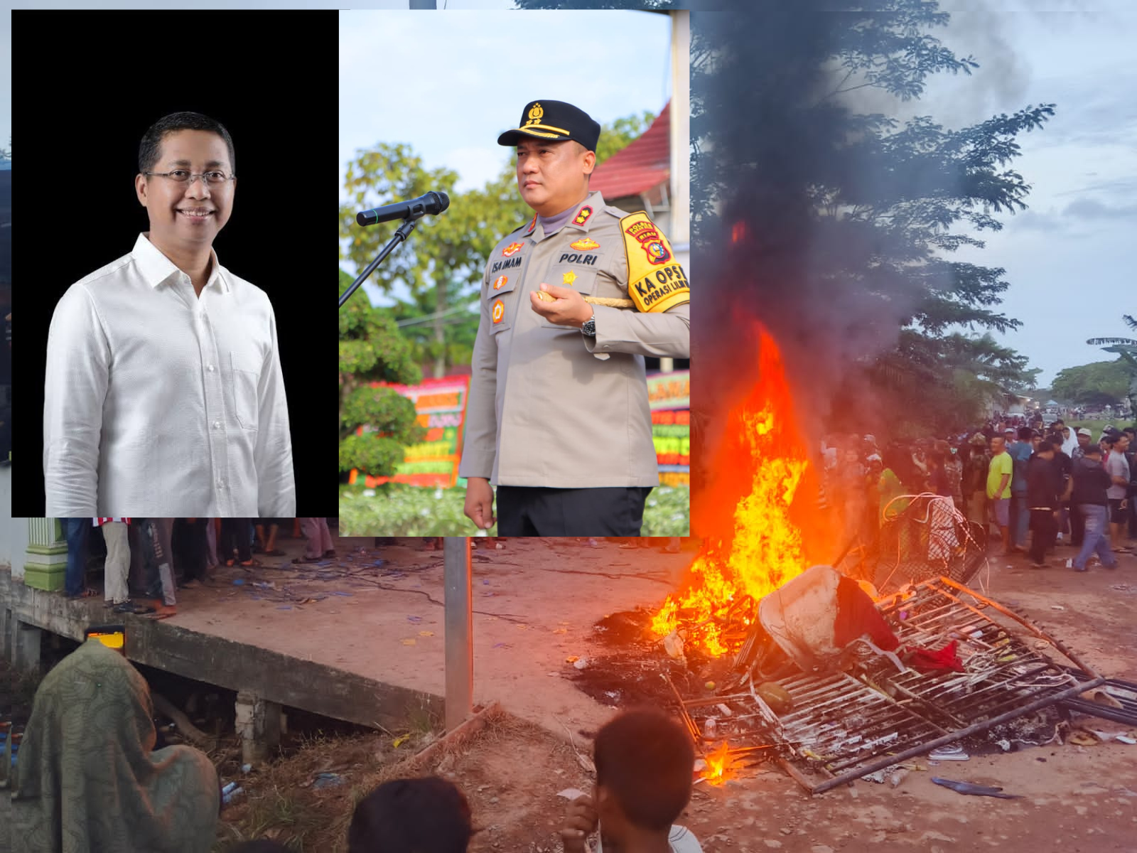 Polres Rohil menyampaikan bahwa aksi ini diwarnai kericuhan, sebanyak empat unit sepeda motor dibakar, sementara barang-barang didalam rumah dikeluarkan dan ikut dibakar di depan lokasi. Rumah tersebut juga sempat dibakar, meski api tidak langsung membesar karena bangunan terbuat dari beton.” Terangnya.