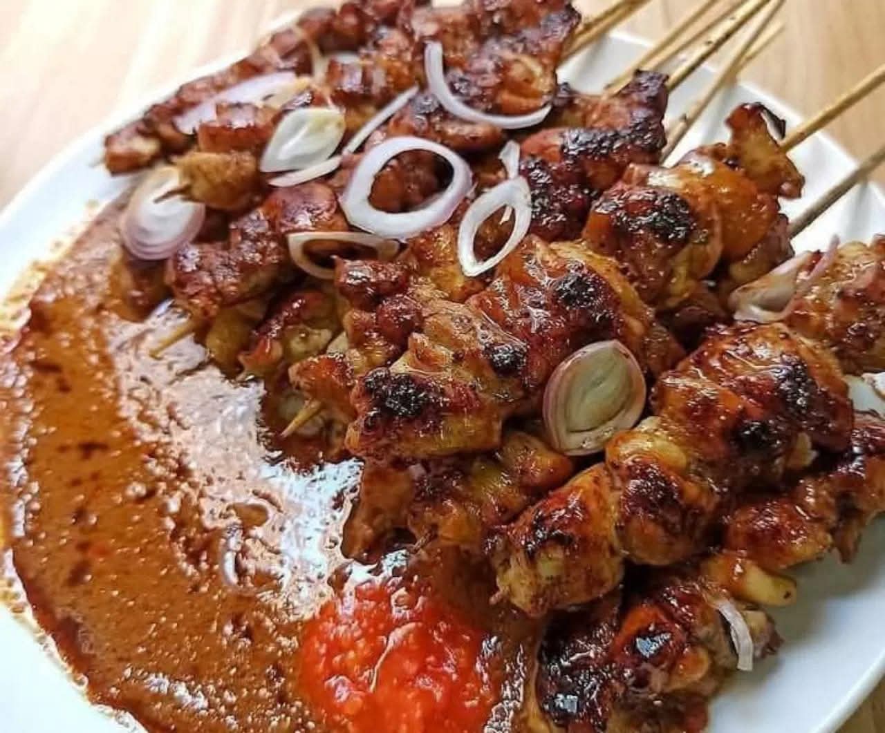 ➡️Tusuk tiap 3-4 potong daging dan 1 potong kulit dengan tusuk sate.
