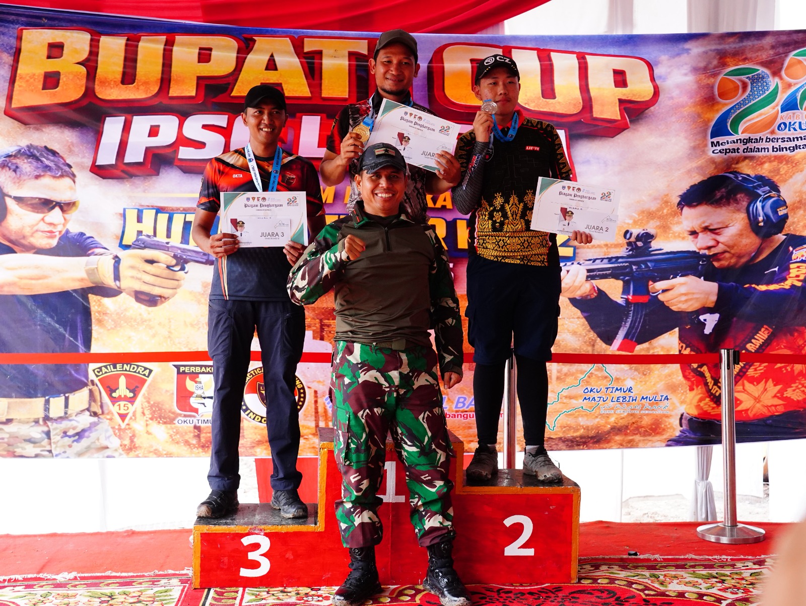Sementara itu, Bupati OKU Timur, Lanosin, menyampaikan apresiasi atas partisipasi TNI dan berbagai klub menembak dalam memeriahkan HUT ke-22 OKU Timur.