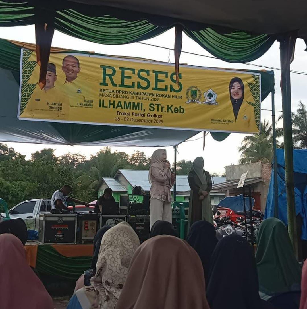 ROKAN HILIR, Infozone| Ketua DPRD Kabupaten Rokan Hilir, Ilhammi, S.Tr.Keb, kembali melaksanakan kegiatan Reses Masa Sidang III Tahun 2025 sebagai agenda rutin menyerap aspirasi masyarakat. Kegiatan yang berlangsung di Sintong, Kecamatan Tanah Putih, Minggu (7/12/2025), mendapat respons antusias dari warga yang memadati lokasi acara.