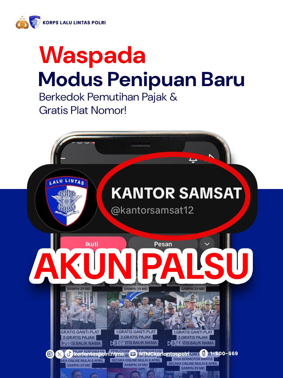 Masyarakat juga diminta untuk selalu mengecek kebenaran informasi melalui kanal resmi pemerintah atau instansi terkait, seperti Samsat dan Korlantas Polri.