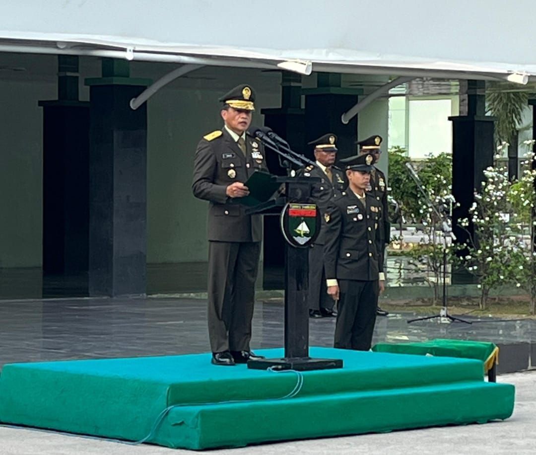 PEKANBARU, Infozone | Kodam XIX/Tuanku Tambusai melaksanakan upacara peringatan Hari Kesaktian Pancasila yang berlangsung khidmat di Lapangan Upacara Markas Kodam XIX/Tuanku Tambusai Jl. Mayor Ali Rasyid, Rabu (1/10/2025). Upacara Peringatan Hari kesaktian pancasila tahun ini yang mengusung tema “Pancasila Perekat Bangsa Menuju Indonesia Raya”, dipimpin langsung oleh Kasdam XIX/Tuanku Tambusai Brigjen TNI Bagus Suryadi Tayo, M.Sc.