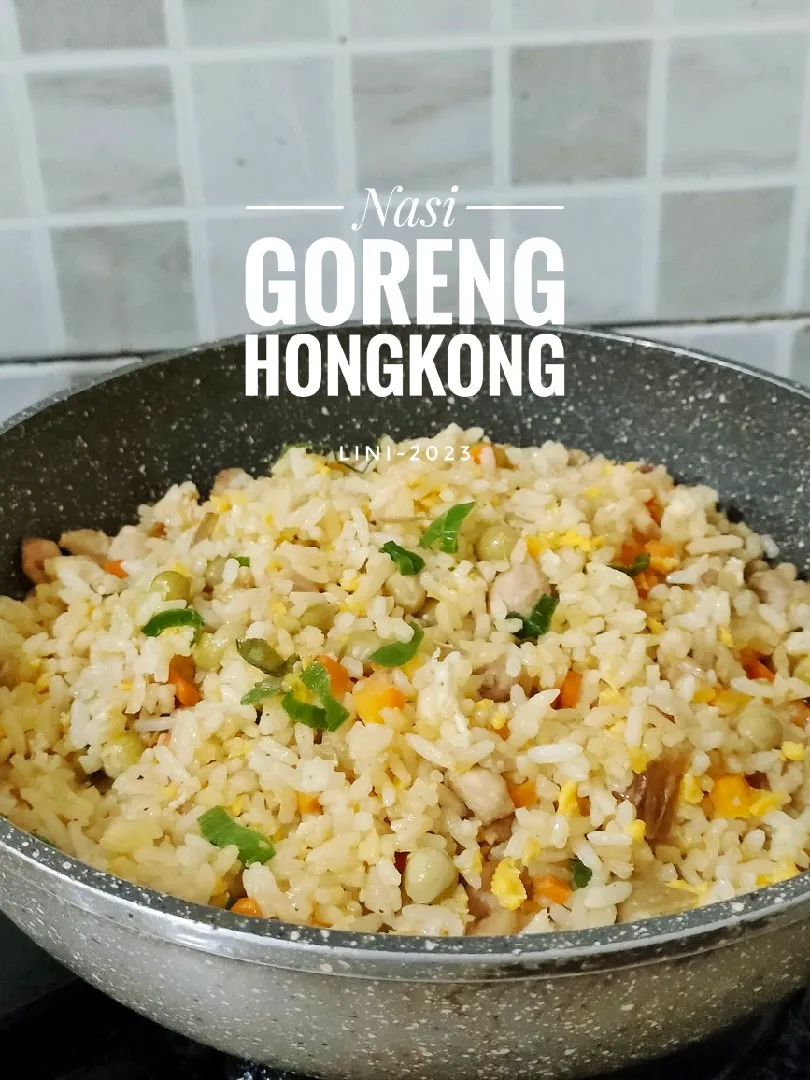 Tambahkan nasi putih, masukkan garam, lada, saos tiram, kacang polong & daun bawang.