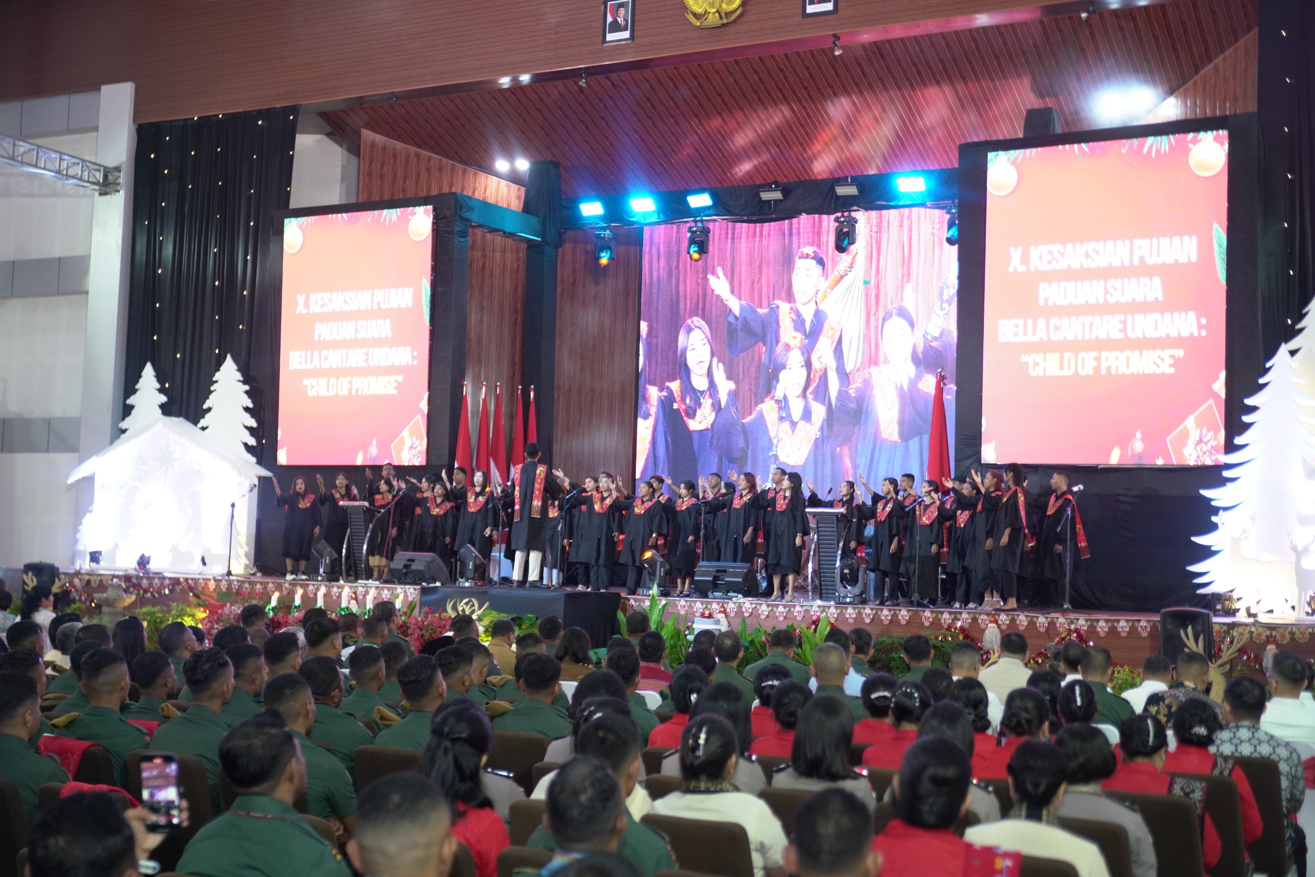Perayaan Natal Bersama ini dihadiri prajurit TNI AD, AL, AU, PNS TNI, keluarga besar TNI dan Polri, mahasiswa Universitas Pertahanan, unsur Forkopimda, serta tokoh masyarakat setempat. Suasana khidmat dan penuh sukacita semakin terasa melalui ibadah Natal, puji-pujian, serta pesan Natal yang disampaikan Uskup Agung Kupang, Hironimus Pakaenoni.