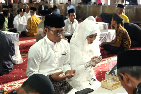 Acara ini juga dihadiri perwakilan Kementerian Sosial, BKKBN, dan BAZNAS. Prosesi dirangkai dengan doa bersama, penyerahan akta nikah, serta simbolis bantuan modal usaha.