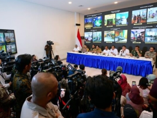 Para menteri dan pejabat terkait menyampaikan keterangannya dalam konferensi pers yang digelar di Posko Terpadu Pangkalan TNI AU Halim Perdanakusuma, Jakarta, Senin, 29 Desember 2025. Foto: BPMI Setpres/Muchlis Jr
