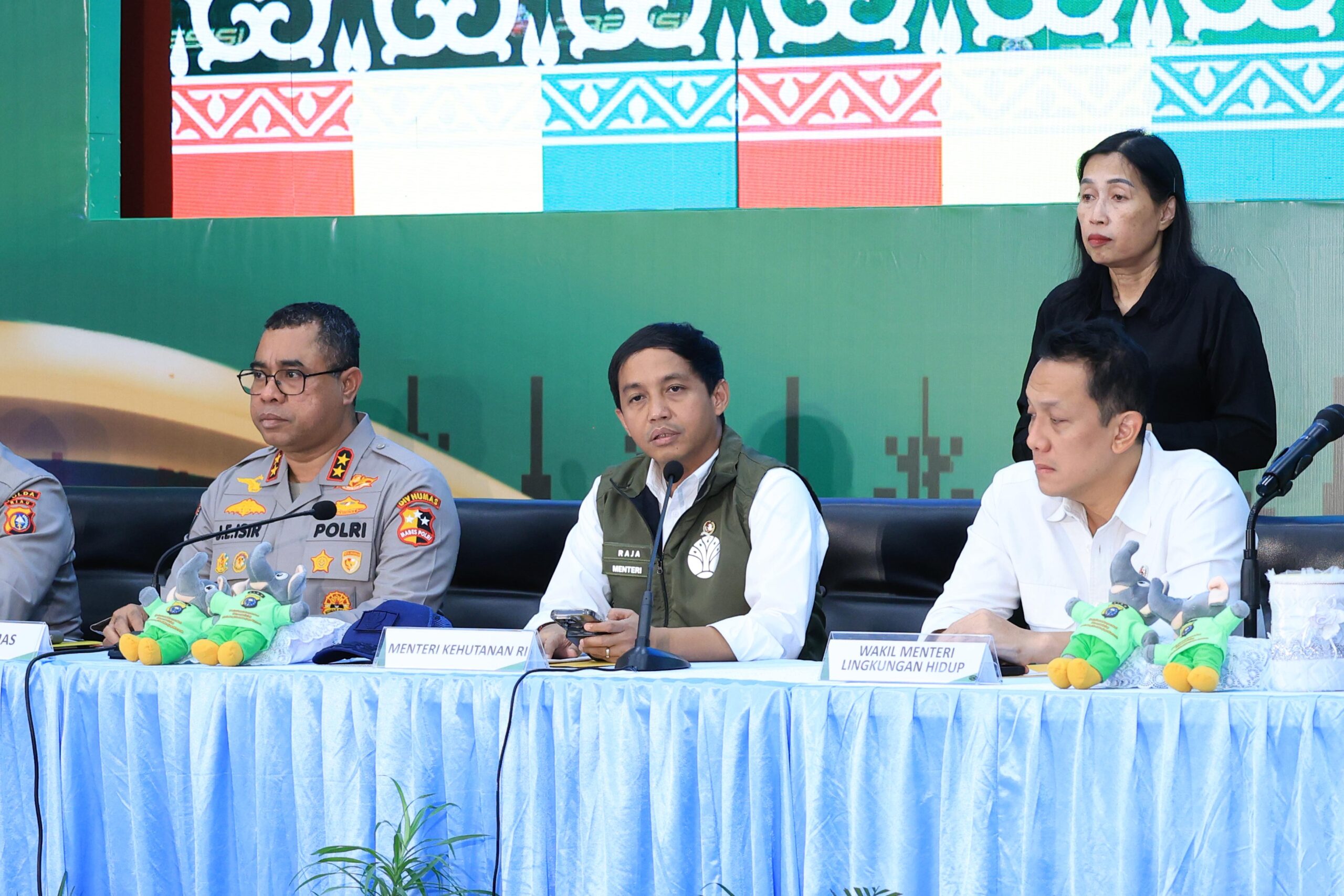 Hadir dalam jumpa pers tersebut, Menteri Kehutanan Raja Juli Antoni, Wamen Lingkungan Hidup Diaz Hendropritono, Anggota Komisi III DPR RI Muhammad Rahul, Plt. Gubernur Riau SF Hariyanto, Penyidik Utama Bareskrim Polri Irjen Zulkarnaen, Kadiv Humas Polri Irjen Johnny Isir, Pangdam Tuanku Tambusai Mayjen Agus Hadi Waluyo, dan Kapolda Riau Irjen Herry Heryawan beserta jajaran PJU Polda Riau dan Polres Pelalawan.