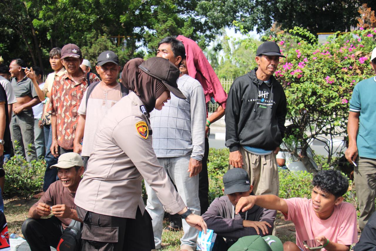 Dengan senyum ramah, Polwan menyapa para pengunjuk rasa dan membagikan permen serta minuman sebagai bentuk dukungan agar masyarakat tetap berenergi selama menyampaikan aspirasinya. Kehadiran para Polwan disambut baik oleh peserta aksi yang merasa terbantu dan dihargai.