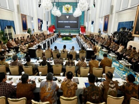 Presiden Prabowo Subianto bersama Wakil Presiden Gibran Rakabuming memimpin Sidang Kabinet Paripurna dalam rangka memperingati satu tahun pemerintahan Kabinet Merah Putih di Istana Negara, Jakarta, pada Senin, 20 Oktober 2025. Foto: BPMI Setpres/Cahyo