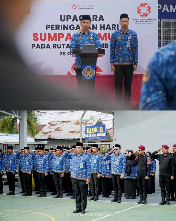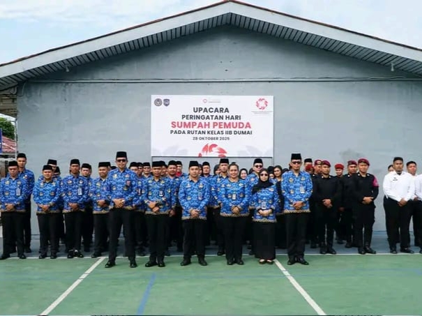 Dumai, Infozone | Rumah Tahanan Negara (Rutan) Kelas IIB Dumai menggelar upacara bendera dalam rangka memperingati Hari Sumpah Pemuda ke-97 Tahun 2025, yang mengusung tema “Pemuda Pemudi Bergerak, Indonesia Bersatu.” Upacara berlangsung dengan khidmat di halaman Rutan dan diikuti oleh seluruh pejabat struktural, petugas, serta perwakilan warga binaan, Selasa (28/10).