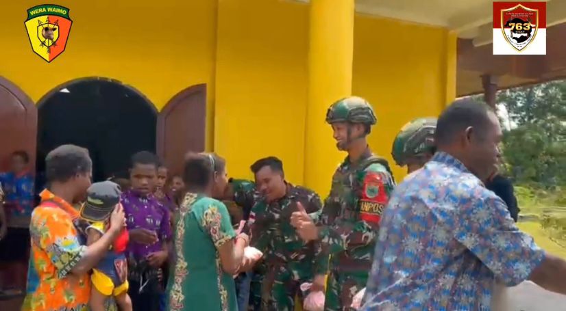 Maybrat, Infozone | Pos Bori Satgas Yonif 763/SBA melaksanakan kegiatan pembagian sembako kepada masyarakat Kampung Bori. Kegiatan ini dilaksanakan setelah pelaksanaan ibadah hari Minggu di Gereja Santa Monica Bori di Kampung Bori Distrik Aifat Kabupaten Maybrat. (29/10/2025).