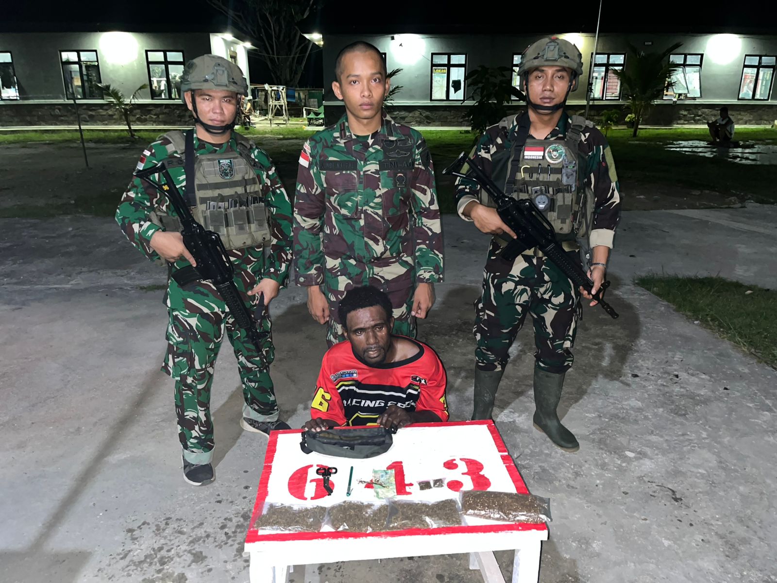 Setelah dilakukan pemeriksaan terhadap warga sipil tersebut, personil Satgas berhasil mengamankan barang bukti Narkotika berupa Ganja yang siap diedarkan sebanyak 4 (empat) kantong besar dan 2 (dua) kantong kecil dengan berat keseluruhan 180 gram.