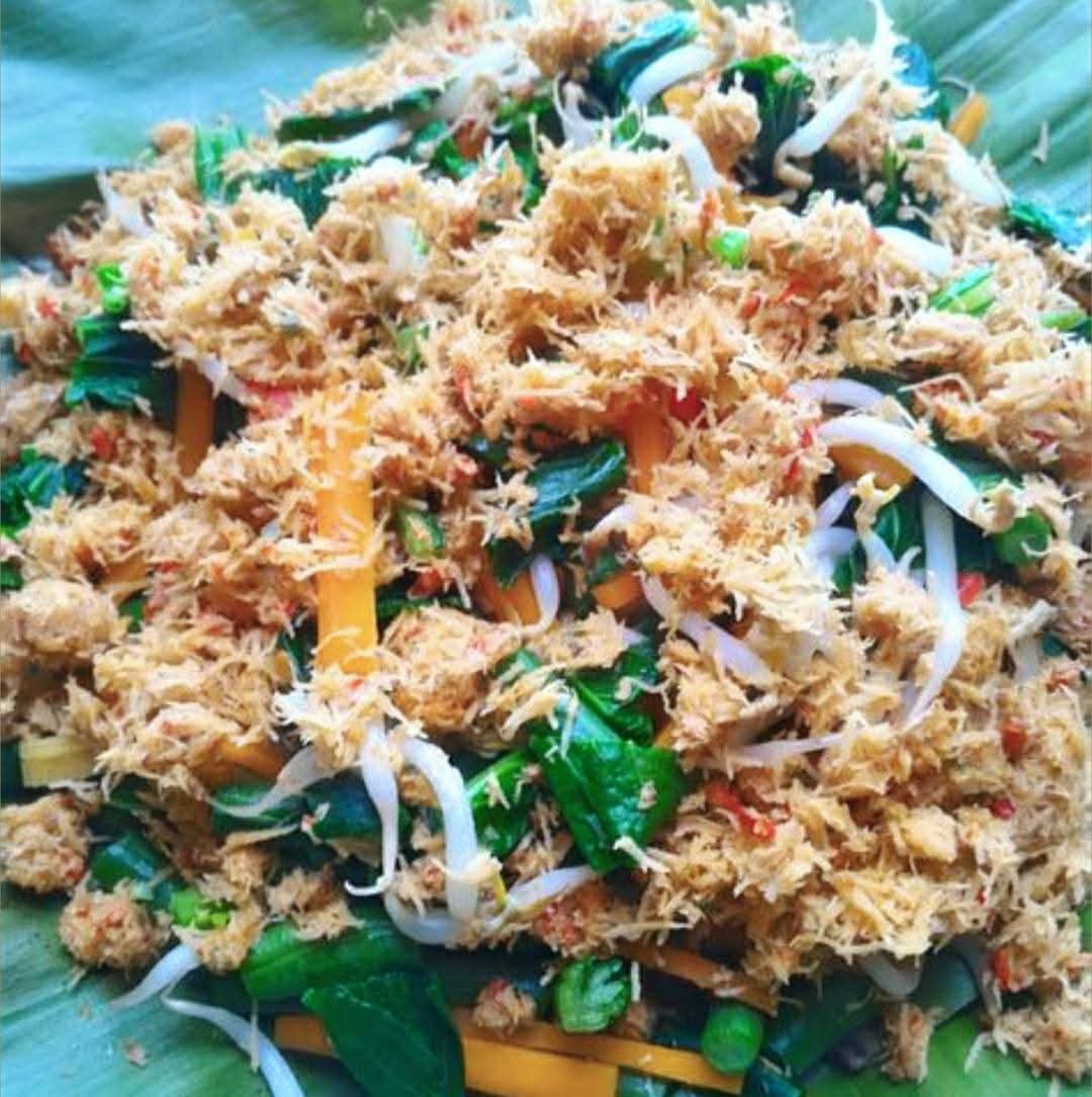 4. Campurkan sayur rebus dengan kelapa berbumbu, aduk rata.